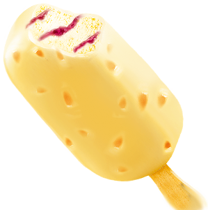 Yogurt flavored ice cream, with fruit topping, coated in white chocolate with nuts. This ice cream will delight your senses.