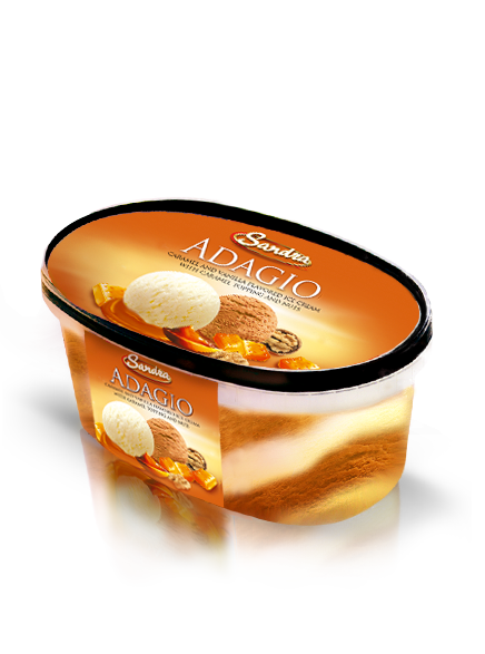 Tap your spoon in the Adagio dessert and discover the abundance of nuts swirled through smooth, creamy caramel ice-cream and vanilla flavored, topped with caramel sauce. You will savor the sweet, velvet richness of the gourmet delight in every bite.
