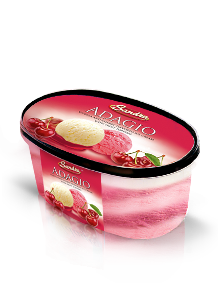 The seducing smooth cherry and vanilla ice-cream, blended with cherry pieces is covered by swirled roads of rich cherry jam. A delight that will remind the beautiful summer days.