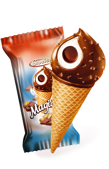 The finest vanilla flavored ice-cream is combined with rich chocolate toping, carefully placed in a wafer cone. The top is magically covered with crunchy chocolate coating, designed with nuts.