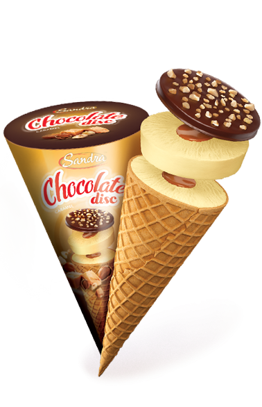 Caramel ice cream covered with a delicious fine chocolate disc, sprinkled with hazelnuts and caramel topping in a sweet and crunchy chocolate glazed waffle cone. A veritable treat for your taste buds.