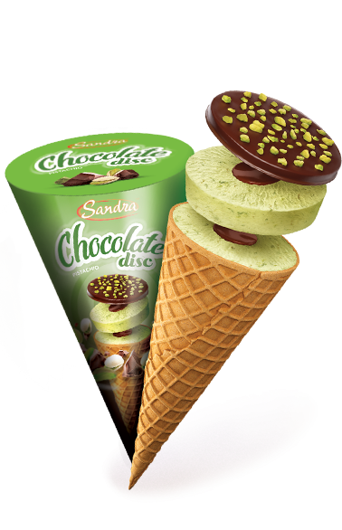 Chocolate wrapped crispy cone is filled with fine vanilla and strawberry flavored ice-cream, with layers of strawberry jam. It contains jam and hazelnuts for an intense pleasure.