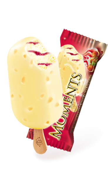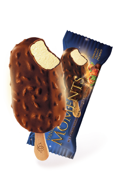 Rich and smooth vanilla flavored ice-cream is sweetened by fine caramel ribbons and then is dipped in nuts and crunchy chocolate coating. Relax and experience a moment of timeless pleasure as the intense ice-cream lingers and time stands still.