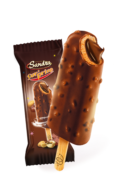 Sur’prise combines vanilla flavored ice-cream, topping, white chocolate coating with peanuts. You will be excited when will get the delicious surprise inside of the dessert – your favorite caramel topping.