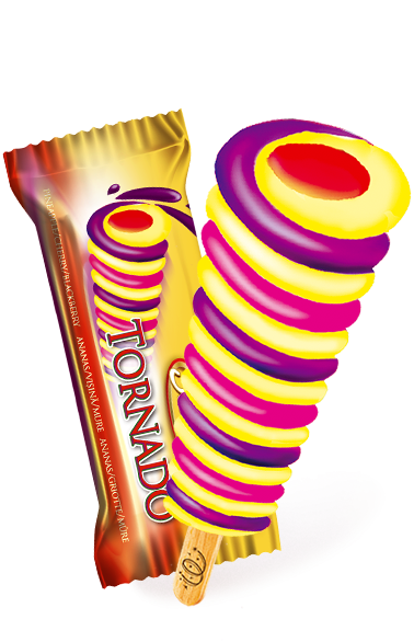 To fill yourself with vitality like in a tornado of fruits, enjoy the ice cream where are twisted flavors of cherry, pineapples and blackberry.