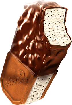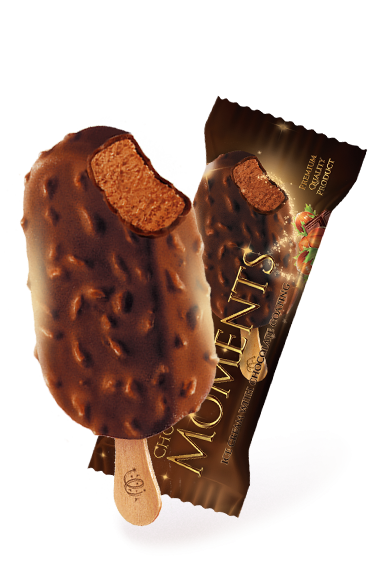 For an intense chocolate aroma delight the combination of smooth chocolate ice-cream in a thick and crunchy chocolate coating.