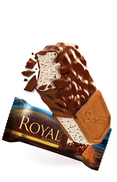 A real delight. These are the three words that can describe the Royal Sandwich. Delicious vanilla ice cream with chocolate drops wrapped in premium chocolate glaze, hazelnuts and biscuits. Hurry to taste this original dessert and do not forget to share it with your loved ones.