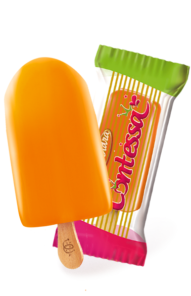 Refresh yourself with deliciously smooth orange flavored ice-cream with a fine orange flavored aromatic coating.