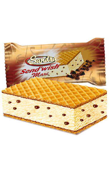 Two crunchy waffle sheets embrace a smooth vanilla flavored ice-cream, blended with chocolate drops and raisin.