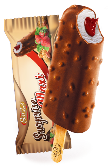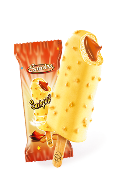 Sur’prise combines vanilla flavored ice-cream, topping, white chocolate coating with peanuts. You will be excited when will get the delicious surprise inside of the dessert – your favorite caramel topping.