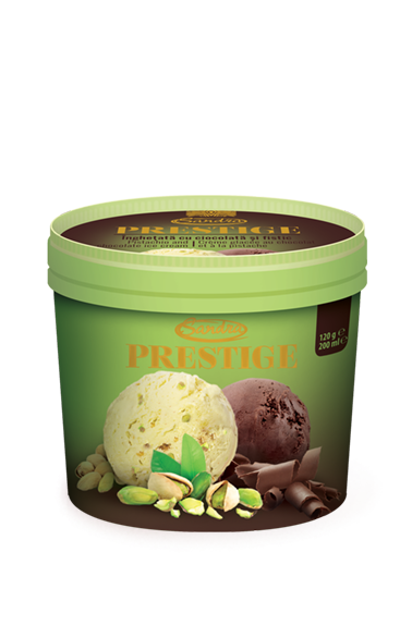 Inspiration created the exclusive new pistachio dessert. Fine pistachio flavored ice-cream, swirled with chocolate ice-cream and chocolate topping, with precious finishes of pistachios and chocolate coating - an inspiring premium delight.