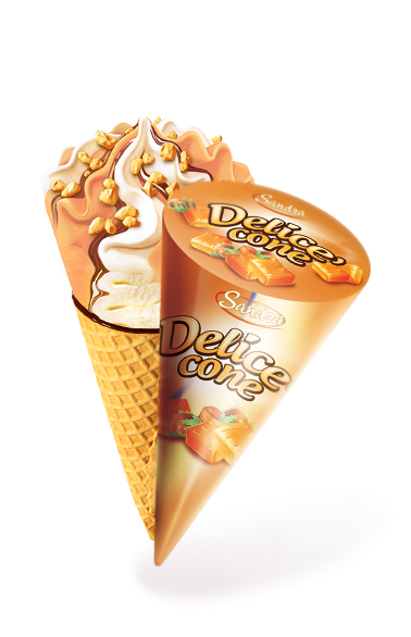 Chocolate wrapped crispy cone is filled with fine vanilla and caramel flavored ice-cream, with layers of caramel topping. It is designed with caramel topping and hazelnuts for an intense pleasure.