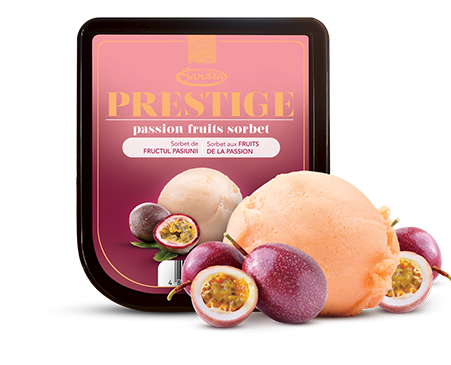 Exotic taste of the passion fruit specially delivered from Peru forms a sorbet with a unique flavor.