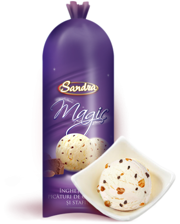 For a double pleasure, savor vanilla flavored ice-cream Plombir filled with chocolate drops and raisin.