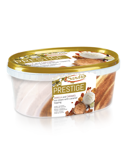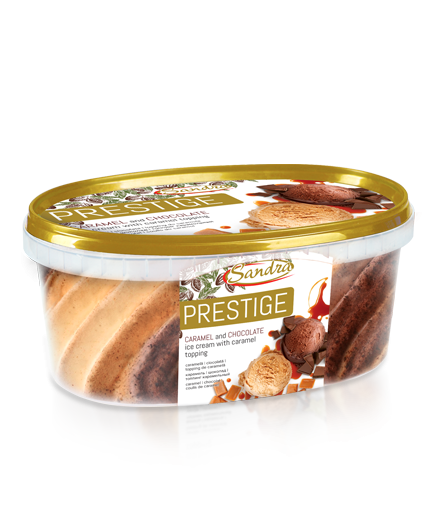 When you’re longing for a sweet and delicate dessert, open up the box with ever so fine chocolate and caramel ice cream, covered in caramel topping following French technology.