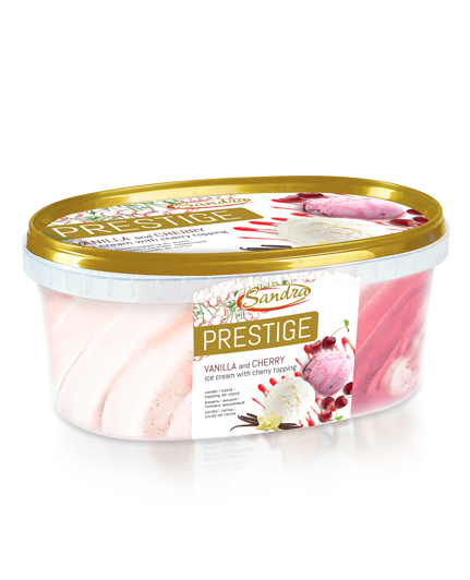 The seducing smooth cherry and vanilla ice-cream, blended with cherry pieces is covered by swirled roads of rich cherry jam. A delight that will remind the beautiful summer days.